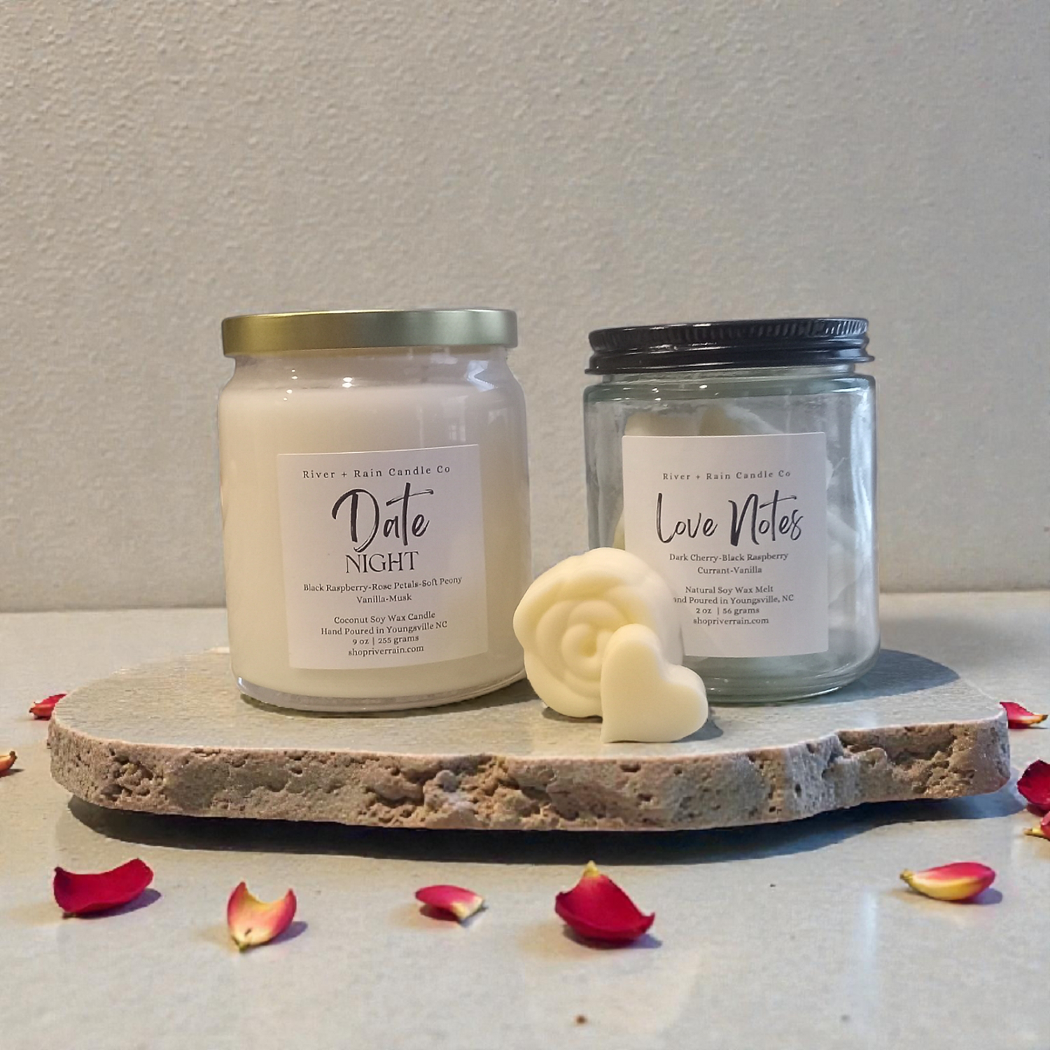 Create an effortless night in with our Date Night candle and Love Notes wax melts. A romantic blend of black raspberry, soft florals, dark cherries, and warm vanilla creates an inviting atmosphere