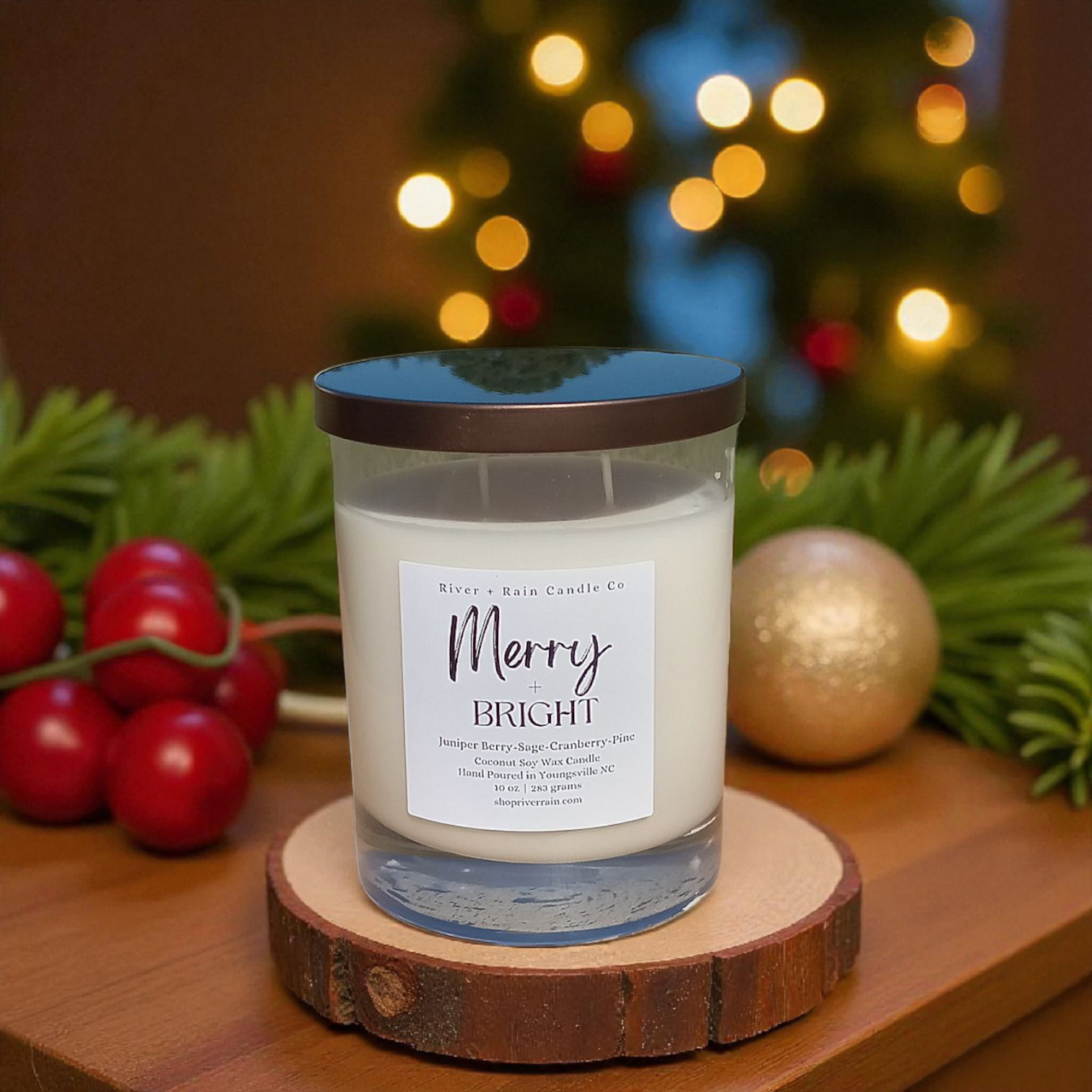 Experience the perfect woodsy, holiday season aroma with Merry + Bright. This candle combines fresh juniper berries and cranberries elevated with hints of peppermint leaves and camphor, perfectly balanced with frosted pine. Enjoy the scents of the season with this harmonious blend.